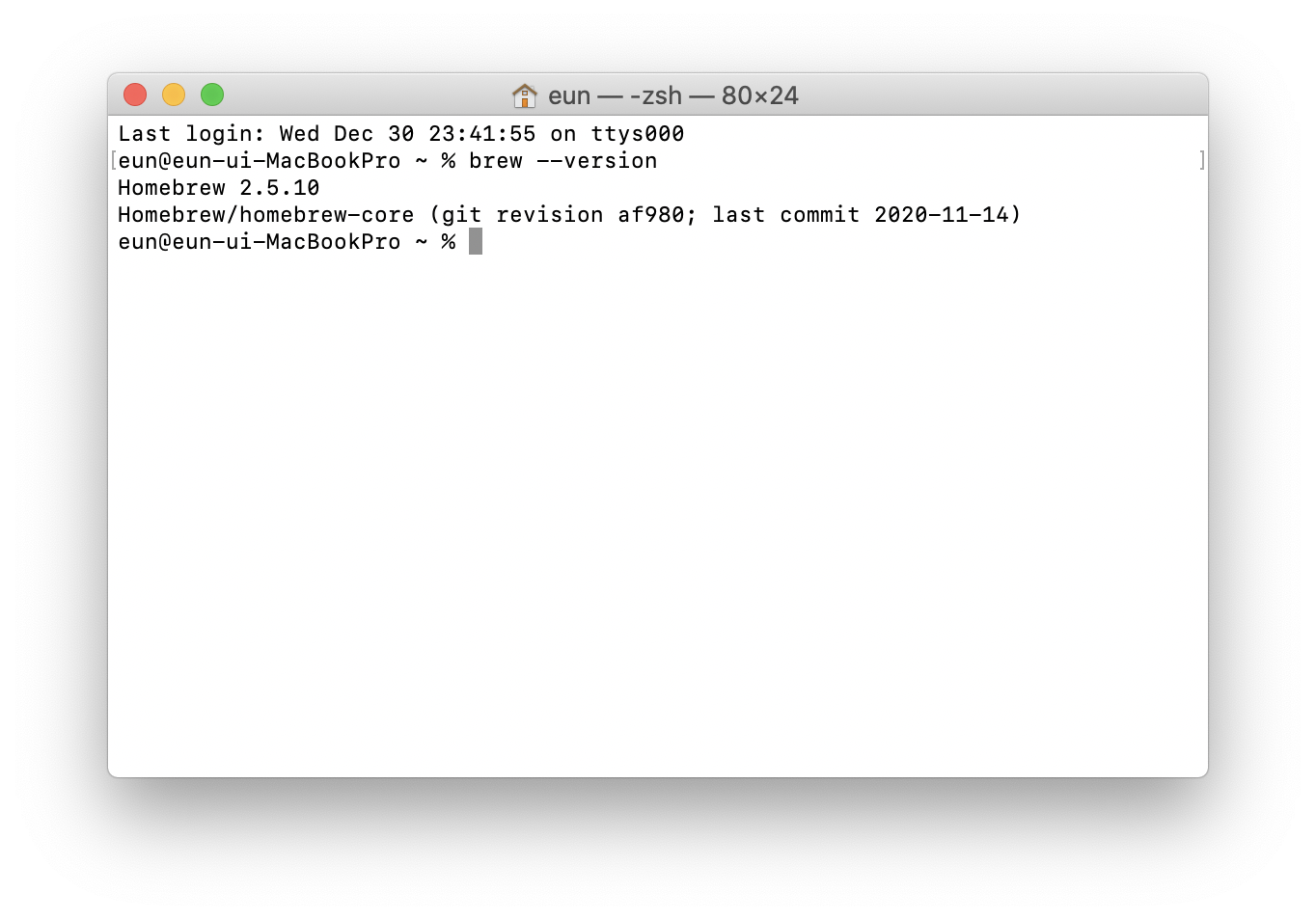 아래의 명령어를 실행시켜 Homebrew 가 설치되어 있는지 확인해본다.