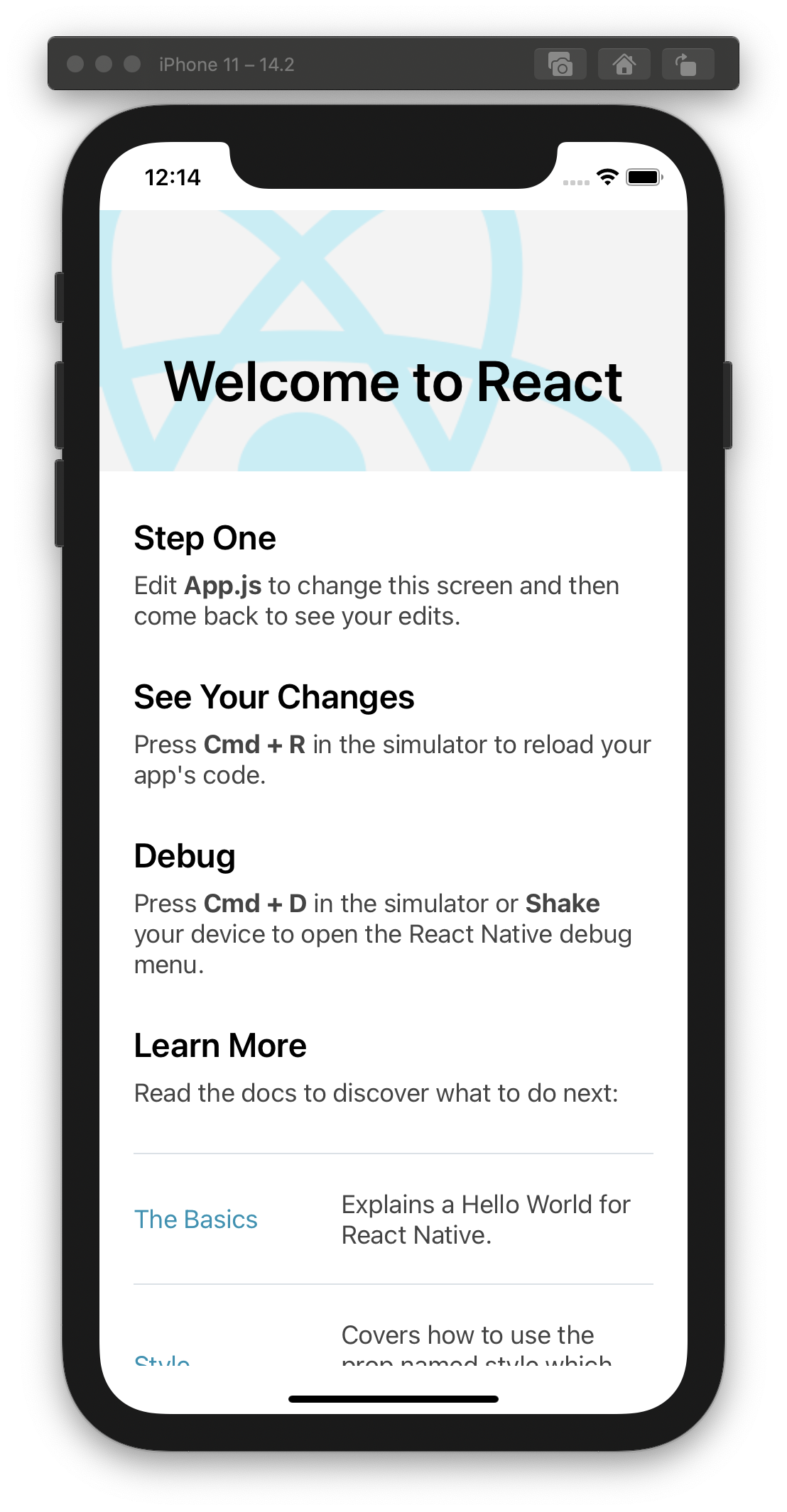 그러면 곧 iOS 시뮬레이터에서 앱이 실행되는 것을 확인할 수 있다.